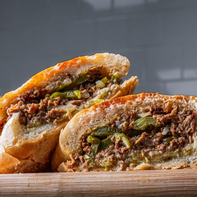 Seasoned shaved ribeye, onions, peppers, provolone cheese, and topped with garlic aioli sauce, served on pressed Cuban bread.