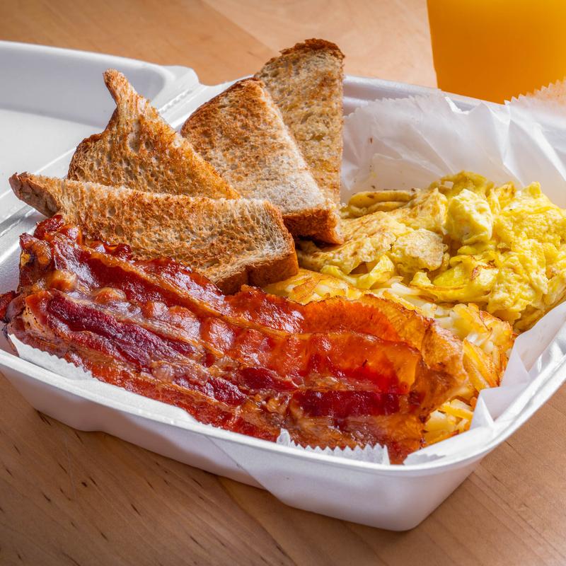 Starting at $7.99 • Standard platter includes choice of Eggs, One Protein, One Starch, and White or Wheat Toast.