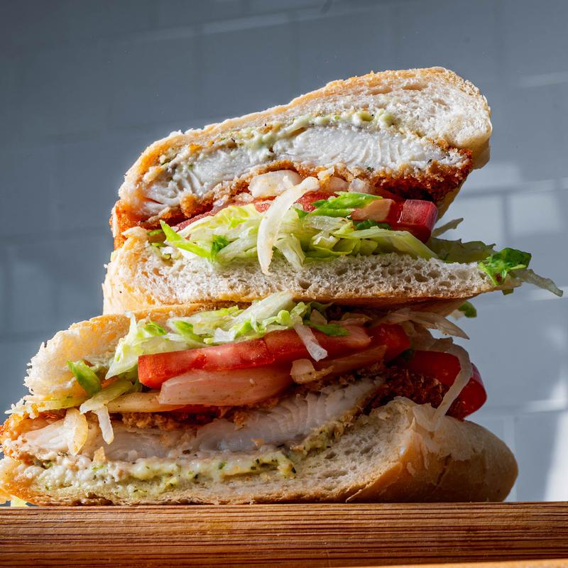Freshly breaded swai/basa filet fried to perfection, served on pressed Cuban bread and topped with lettuce, tomatoes, onions, and tartar sauce.